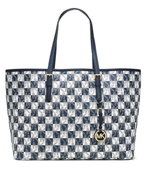 ◆壞蛋美學◆Michael Kors 藍白 -Jet set medium checkerboard 肩背包~已售出